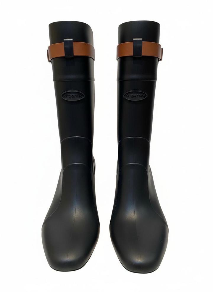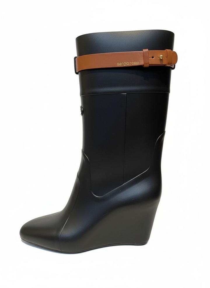 Черные резиновые сапоги на скрытой танкетке 9 см. Артикул: 476104
