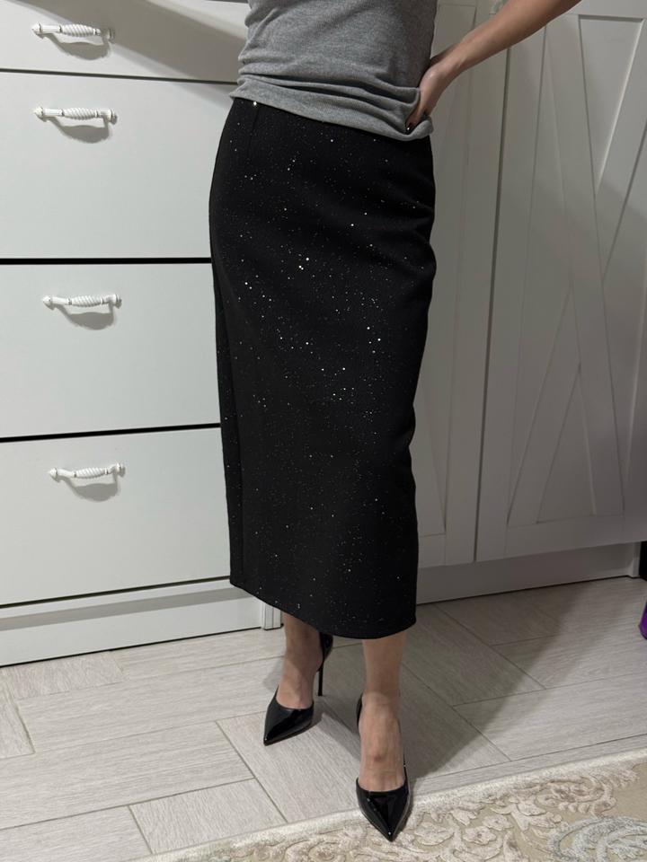 Черная юбка с паетками Состояние: идеально новое с этикеткой Размер: М Материал: Драп Артикул: 476255