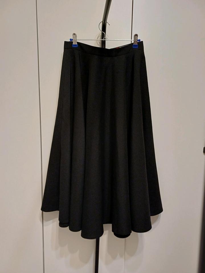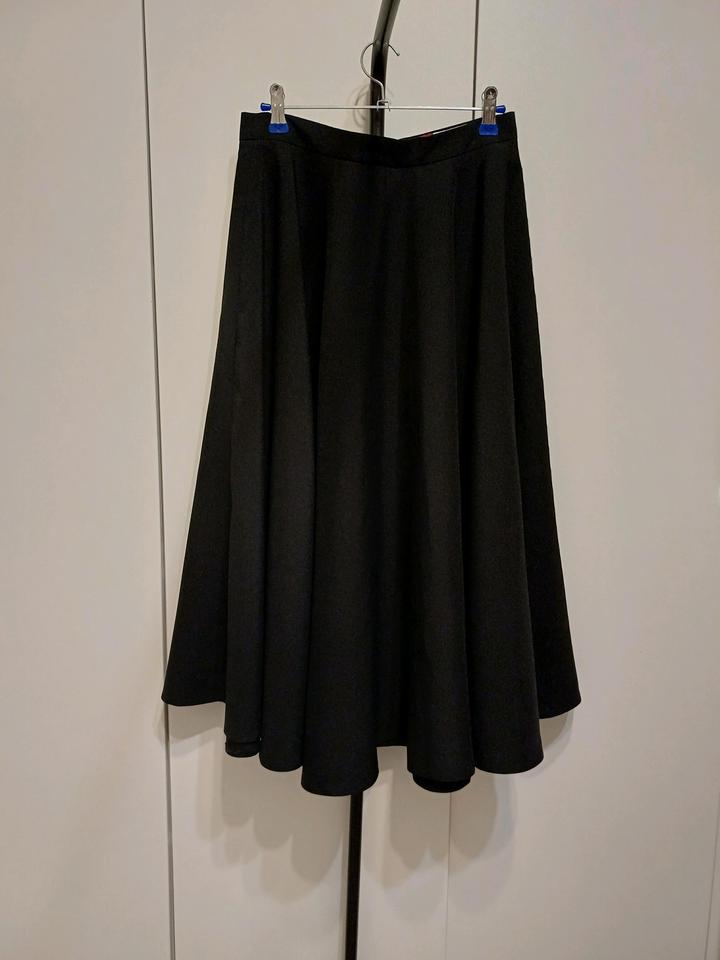 Юбка-солнце длиной ниже колена. Покупала в аутлет магазине. Судя по бирке, предназначена для бальных танцев, но я надевала на мероприятие 1 раз. Удобная регулировка пояса на липучке. Внизу были пришиты 3 атласные ленты, которые я отпорола (на фото видно их следы на изнаночной стороне) Артикул: 476534