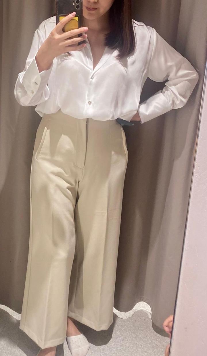 Белая атласная рубашка Zara и брюки от ЗараS