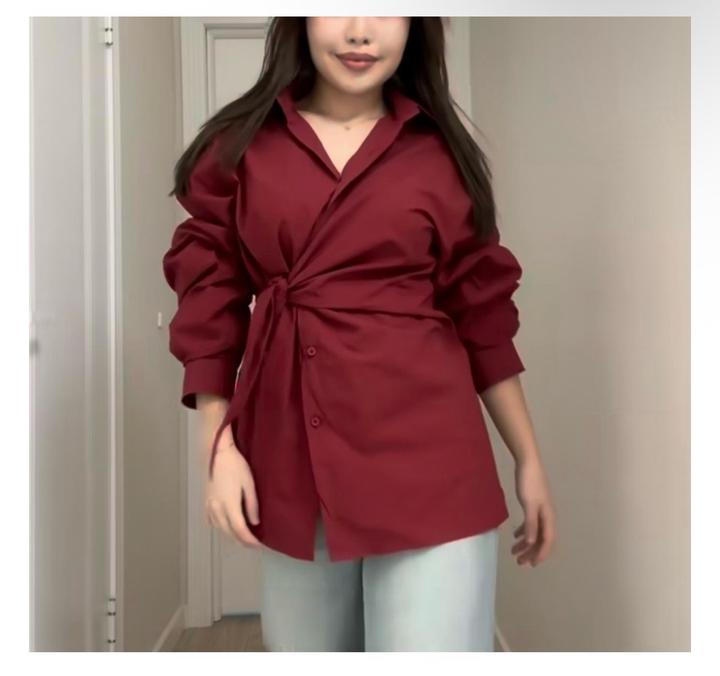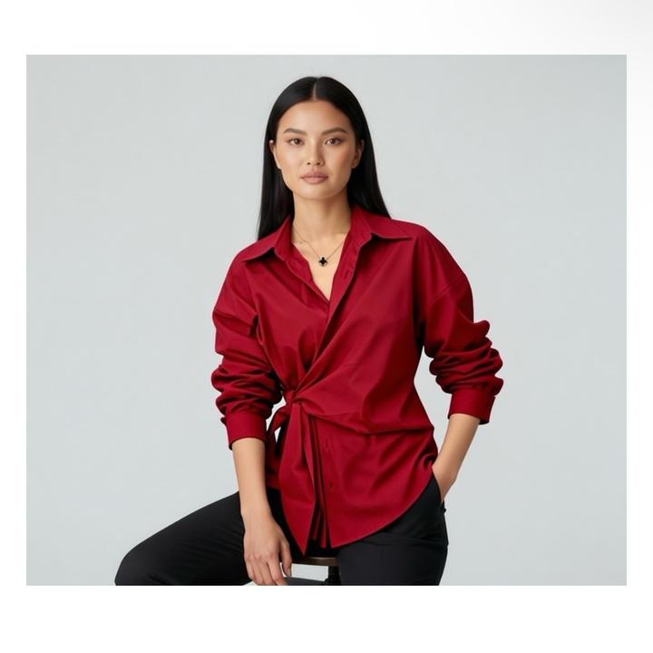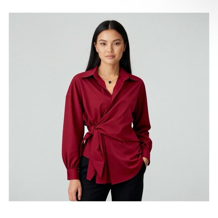 Бордовая рубашка с завязкой. Удобная, из хлопка. Носилось пару раз, состояние отличное. Качество хорошее. Артикул: 476630