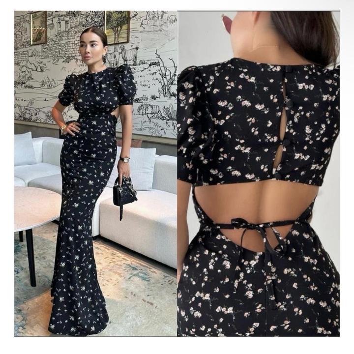 Платье в цветочек. С открытой спиной, с завязками. Надевалось 1 раз, подойдёт на 42-44. Артикул: 476647
