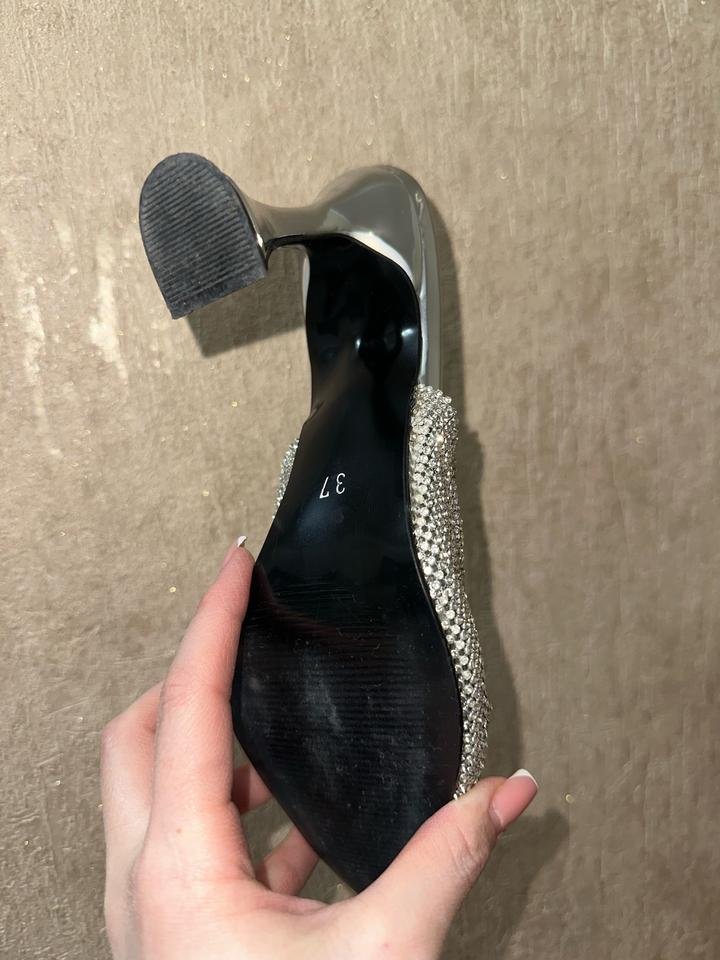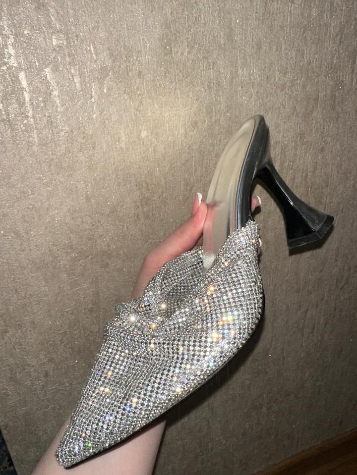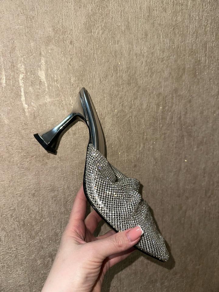 модель с драпированной перемычкой и металлической сеткой с кристаллами,на каблуке «рюмочка» или фигурном каблуке средней высоты является актуальным трендом,рр 37 чуть маломерят Артикул: 476649