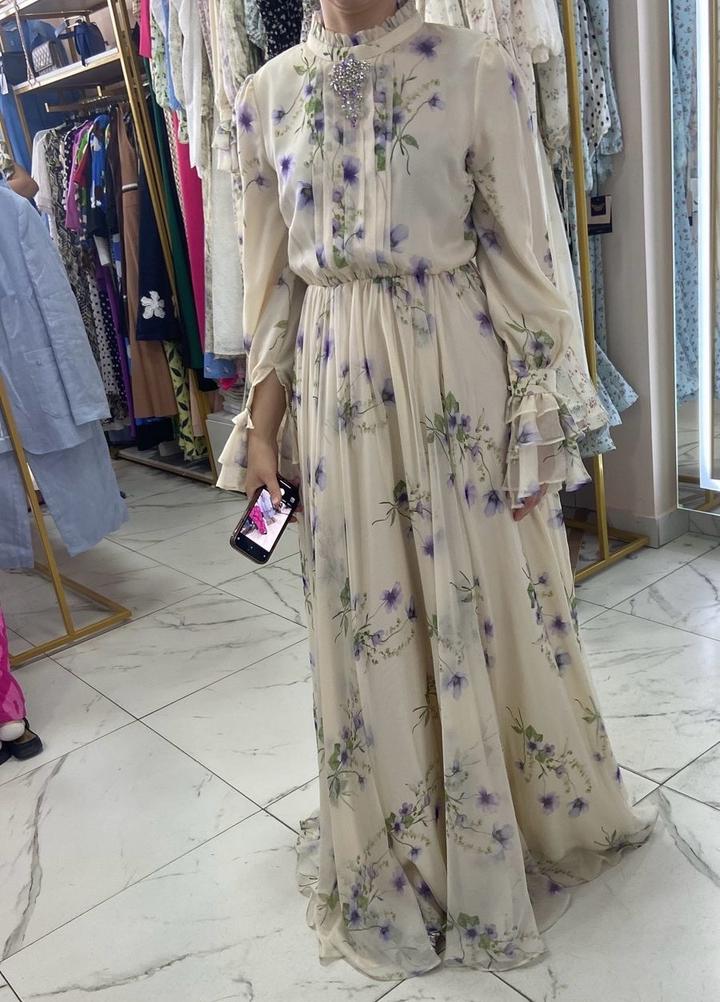 Турецкое нежное шифоновое платье носила на сырга салу и на беташар в размере м-л талия на резинке и есть пояс украшен камнями Артикул: 476661