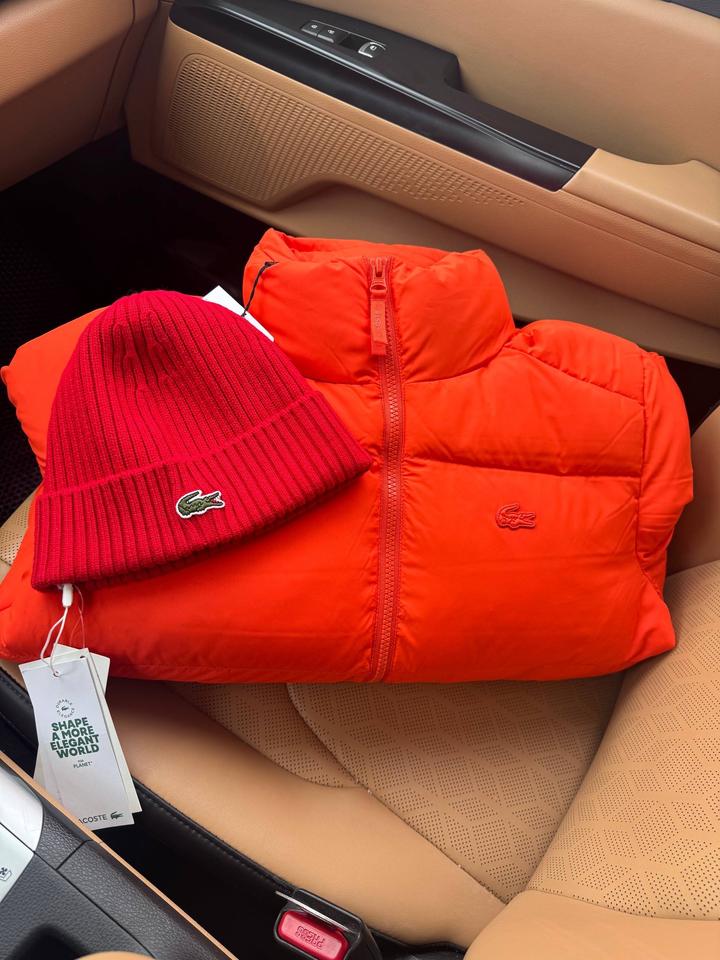 Женская Куртка Лакосте Пух/перо Оригинал, выкуплен с оф магазина в Корее Оранжевая Артикул: 476667