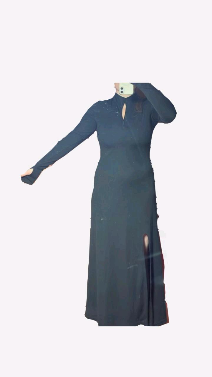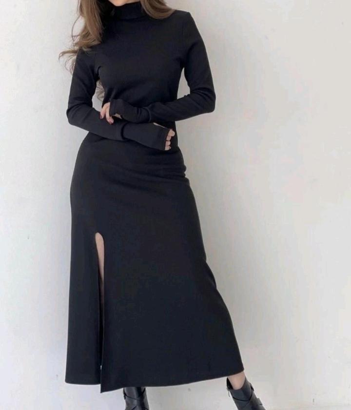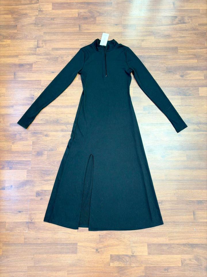 Платье в рубчик , А силуэт На манжете есть вырез для большого пальца , Рабочий замок на груди , Объем спины до 85 см воротник стойка , секси вырез на ноге . Талия до 80 макс Смотрится очень сильно с лоферами Миди на рост от 160 До 170 Весна /осень Артикул: 476702