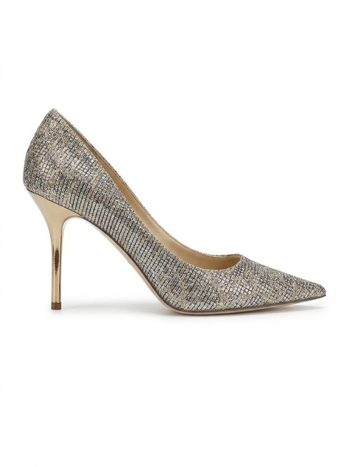 Туфли блестящие мультиколор на золотом каблуке 9 см. Артикул: 476719