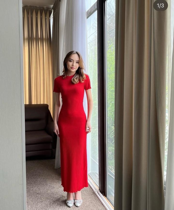 Красного цвета, материал тянется, есть ремешок. Не надевала, размер s Артикул: 476807