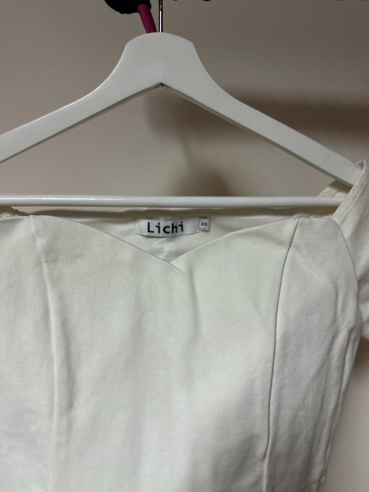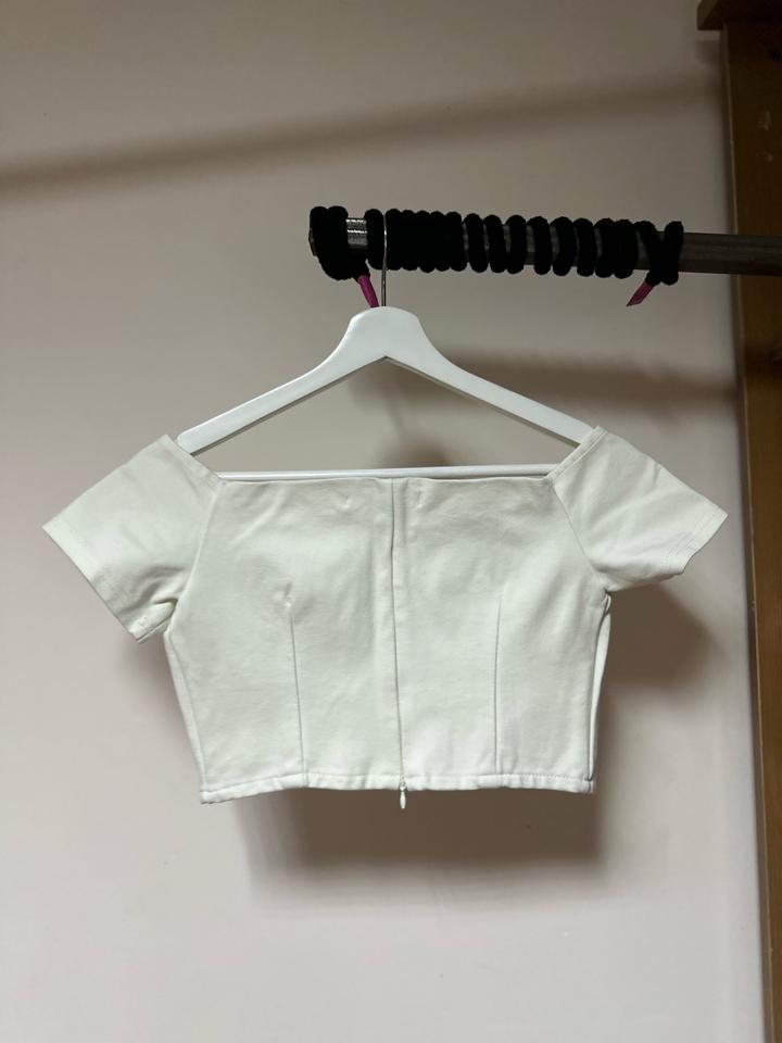 Кроп-топ Lichi в молочном оттенке 🤍 Аккуратный вырез, короткий рукав и приталенный крой красиво подчёркивают линию плеч и талию. Плотная ткань держит форму и смотрится аккуратно. Размер XS. Идеален к юбкам с высокой посадкой или классическим брюкам ✨ Артикул: 477042