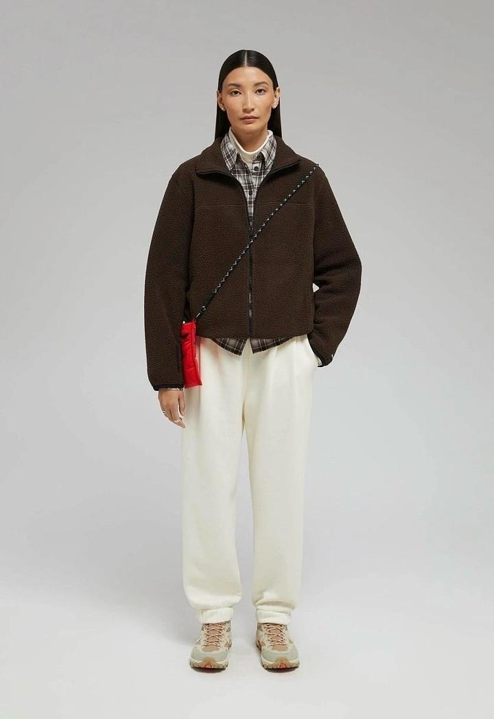 Коричневая куртка из тёплой шерпы, молния по центру и свободный крой. Состояние хорошее, без видимых дефектов Артикул: 477328