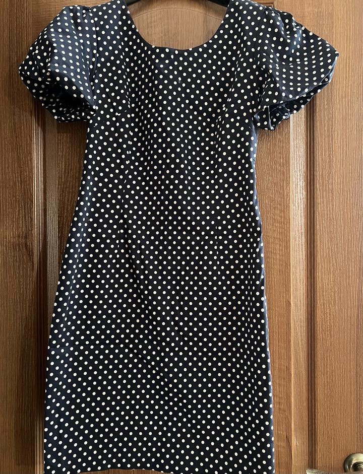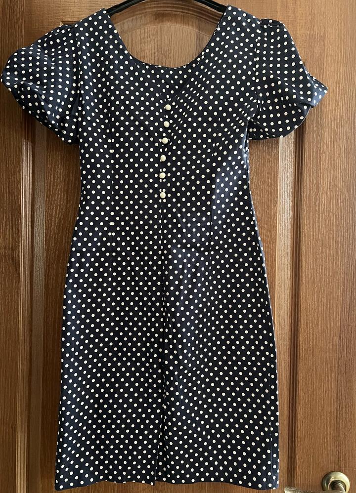 Красивое платье в классический горошек с объёмными рукавами. Очень женственное, аккуратно подчёркивает фигуру. Турецкое,очень качественное .Размер 38 турецкий , на наш размер S-M Артикул: 477373