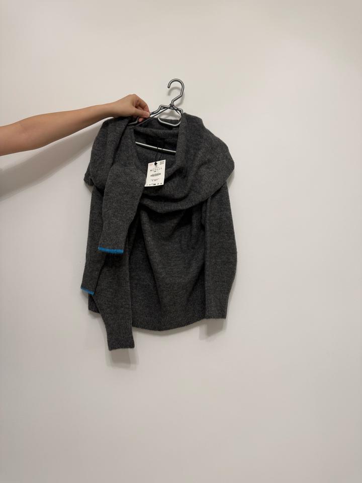 Мягкий и уютный, с лаконичным кроем и акцентной голубой отделкой на рукавах. Отлично подойдёт для прохладной погоды — можно носить как с джинсами для повседневного образа, так и сочетать с юбкой или классическими брюками для более элегантного стиля. Сзади аккуратная посадка и свободный силуэт, который красиво драпируется по фигуре. Артикул: 477390