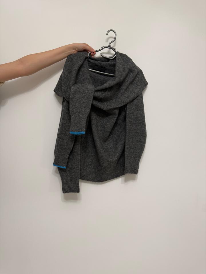 Стильный тёмно-серый свитер с эффектным широким воротом-хомутом.M