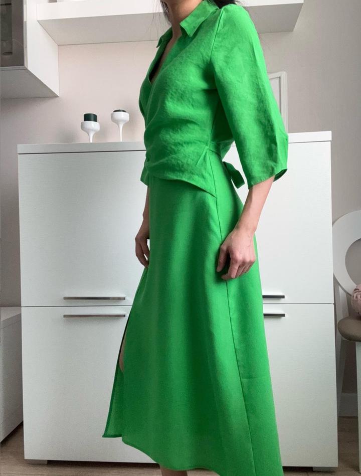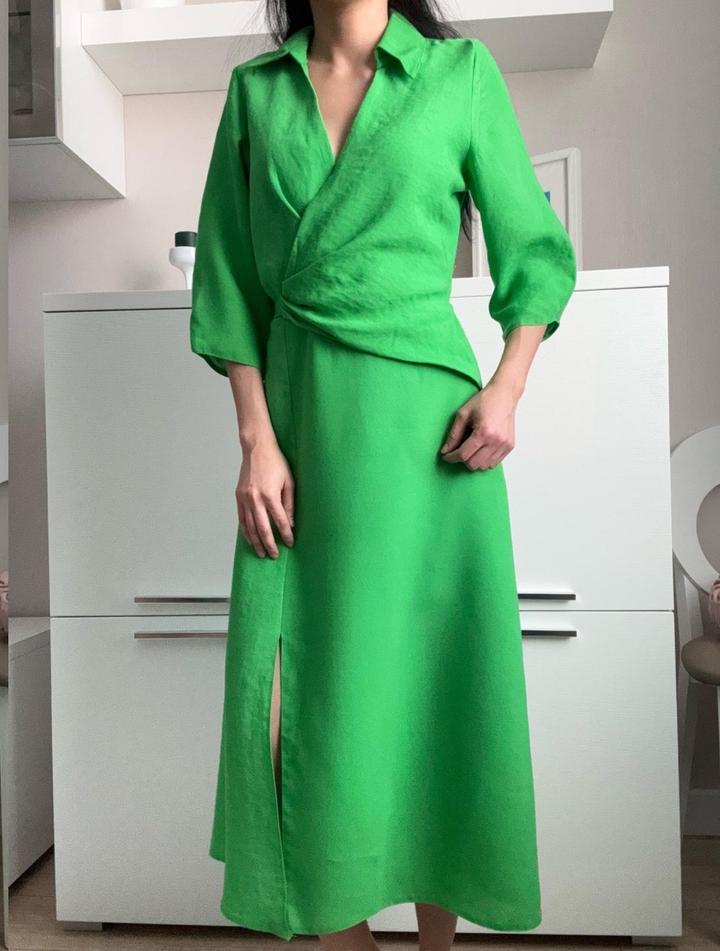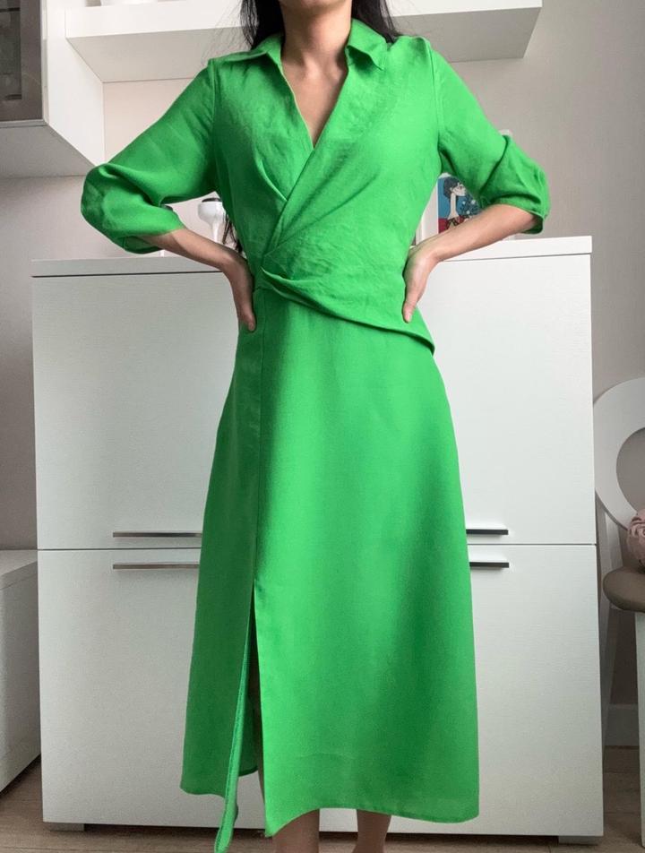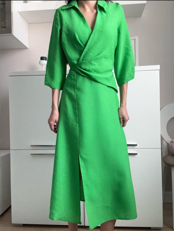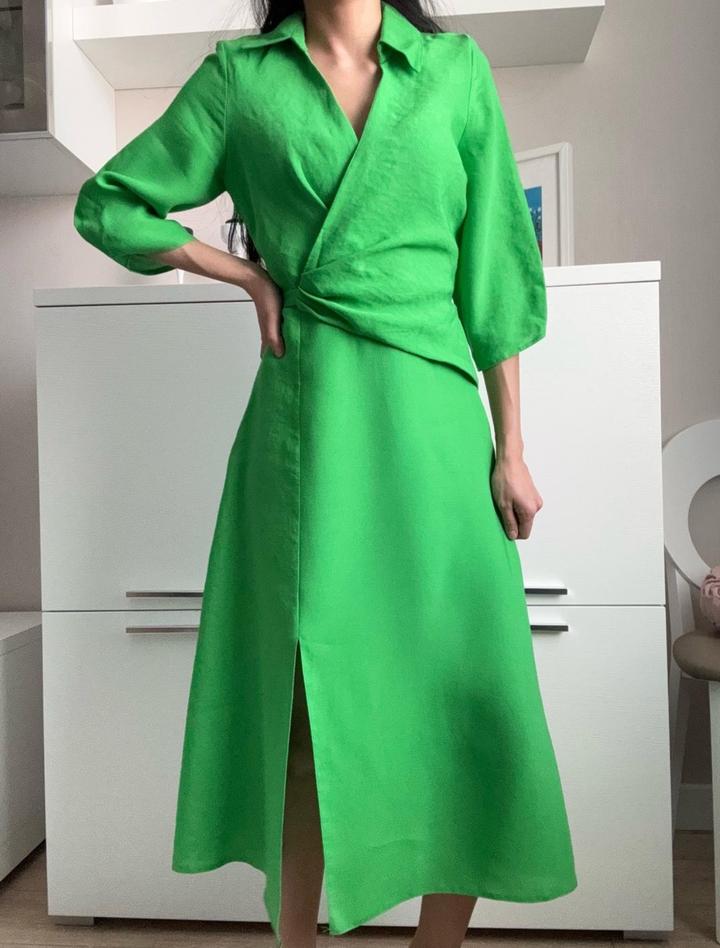 Яркое и эффектное платье миди насыщенного зелёного цвета. Ткань хорошо держит форму и комфортна в носке. Артикул: 477552