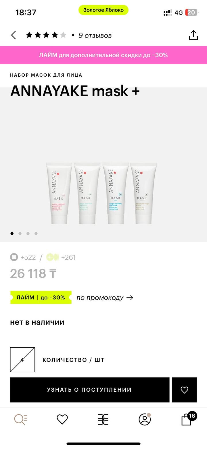 набор входят 4 маски ANNAYAKE из серии MASK + для разных потребностей кожи. Артикул: 477623