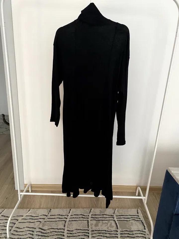 Продаю длинное платье-тунику Ushatava (оригинал) — чёрное, высокая горловина, ажурная вязка, идеально для осени-зимы-весны! Характеристики: Крой: расклешённое макси (до щиколоток), oversize/удобный Горловина: высокая (тёртлнек, можно отворачивать) Рукава: длинные Материал: мягкая вязка (вискоза/шерсть/смесь — не колется, драпируется красиво) Цвет: глубокий чёрный Состояние: почти новое — носилось очень мало (2–3 раза максимум), чистое, без катышков, пятен, затяжек или запахов. Форма держится и Артикул: 477799