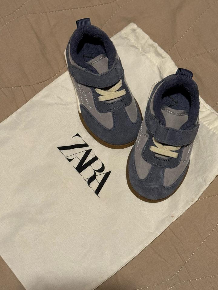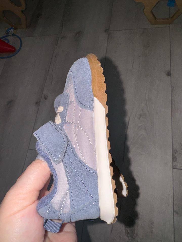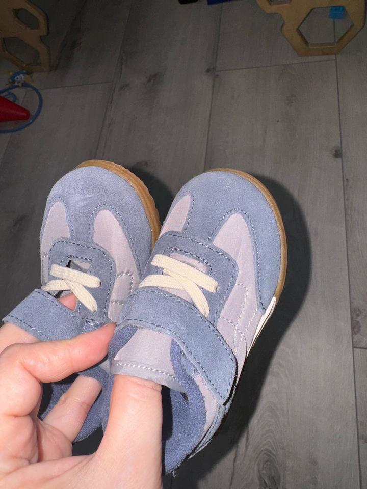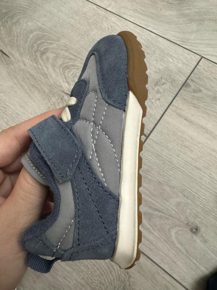 Абсолютно новые кроссовки из смесовой кожи и замши. Размер 22, желательно, чтобы ножки вашего малыша был 12-12,5 см. Тогда будут удобно носить. От годика до 18 месяцев где то. Артикул: 477814
