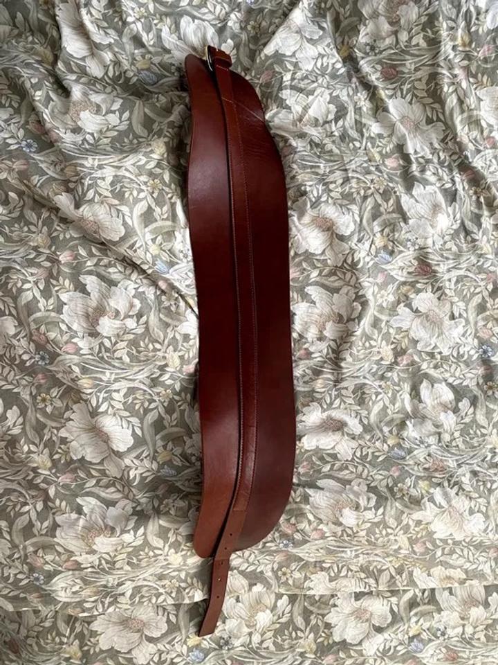 Продаю оригинальный широкий кожаный пояс-саш Zara — коричневый, с золотой пряжкой, почти новый! Характеристики: - Материал: натуральная кожа (тёмно-коричневый/коньячный) - Ширина: ~10–12 см (самый широкий участок) - Пряжка: золотая, классическая - Стиль: sash belt — подчёркивает талию, идеально с платьями, рубашками, пальто Состояние: идеальное/почти новое — надевался мало Артикул: 477822