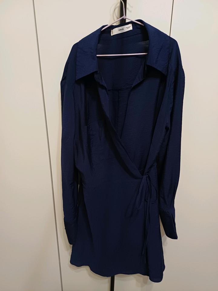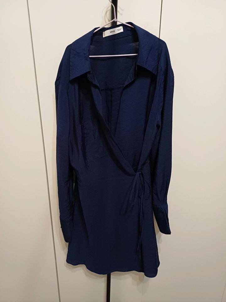 Платье с запахом из вискозы темно-синего цвета. Постирала после покупки, но ни разу не надевала. Впереди есть кармашек Артикул: 478213