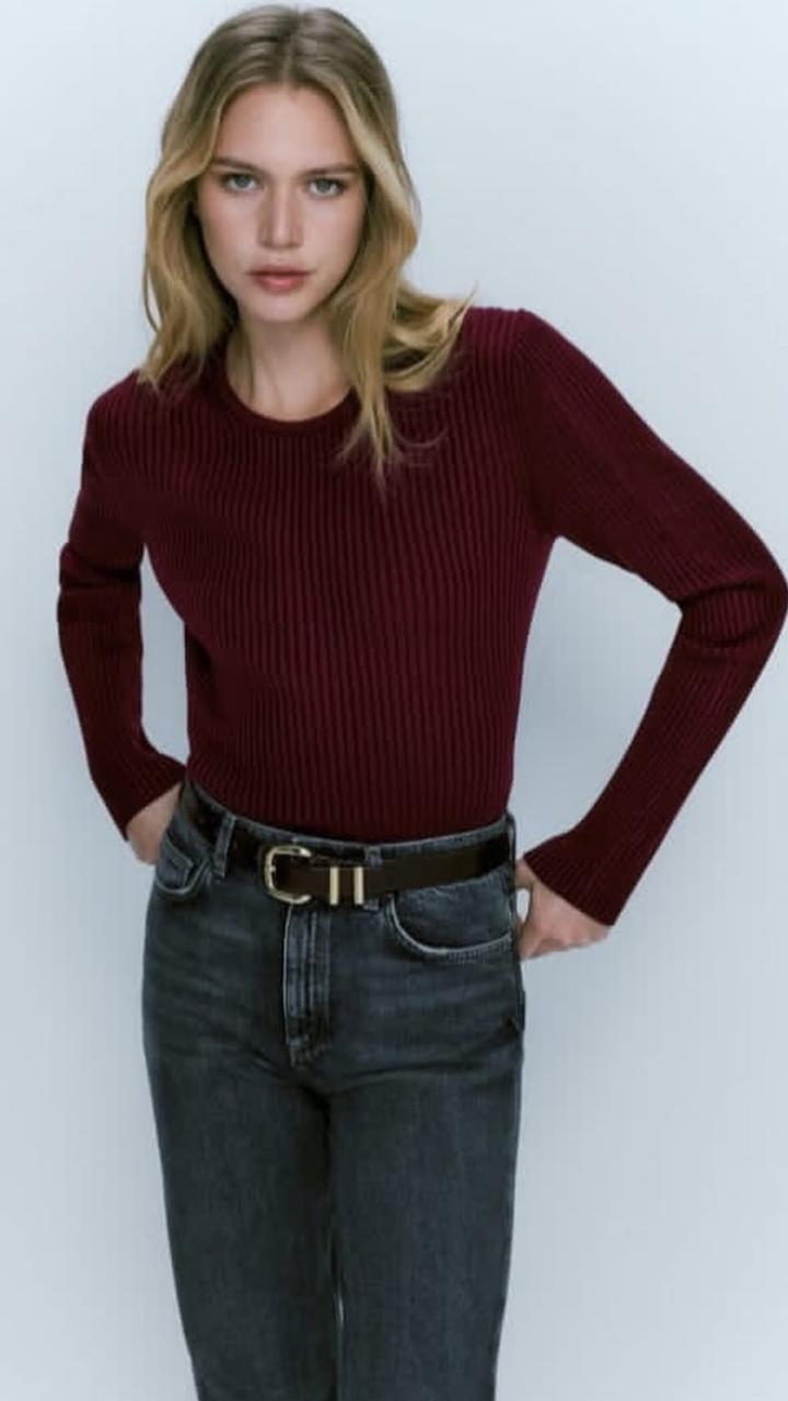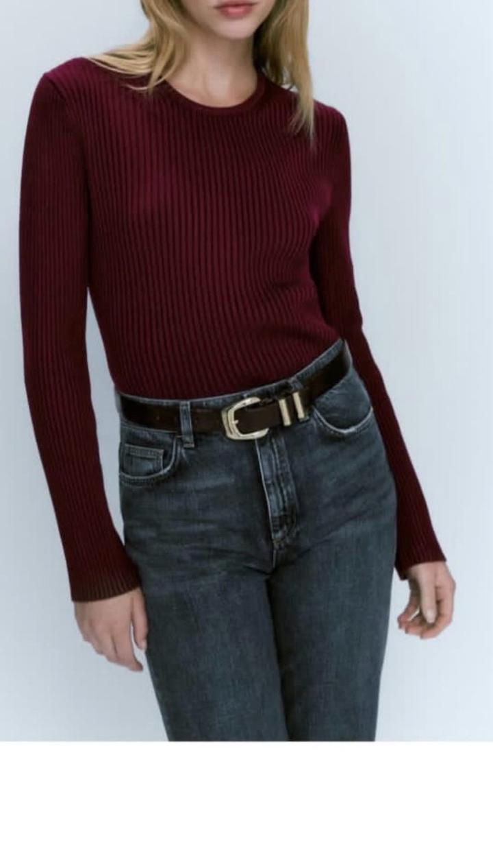 Свитер в рубчик Massimo Dutti. Размер L. Цвет красивый бургундский. Артикул: 478242