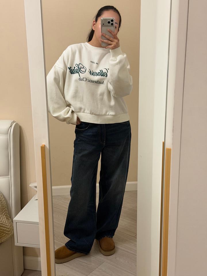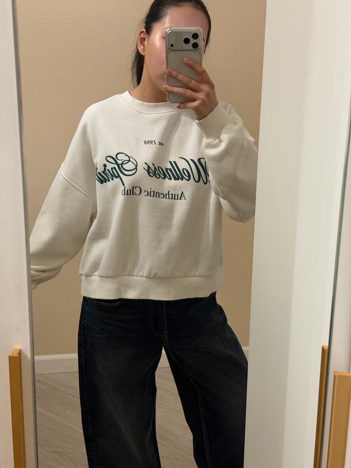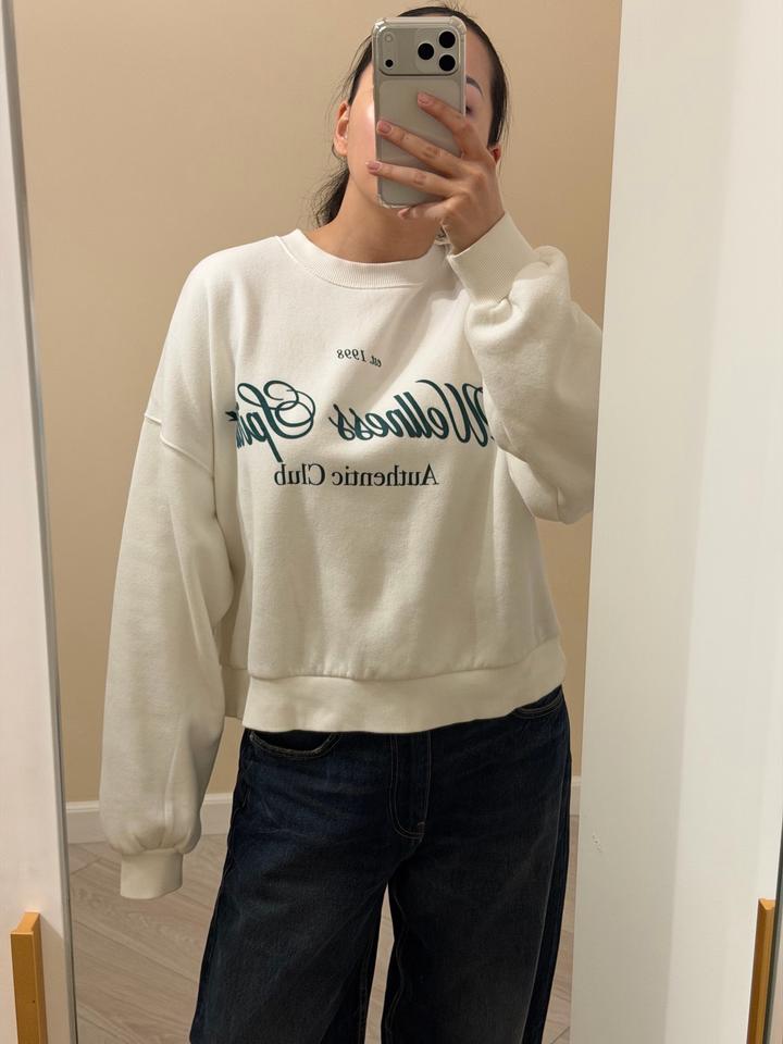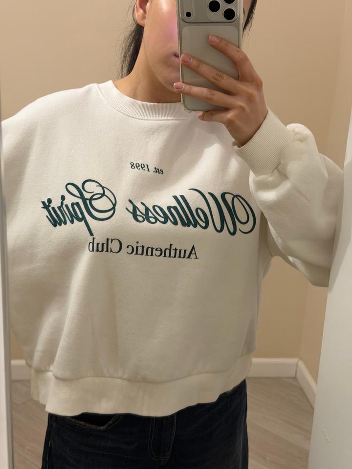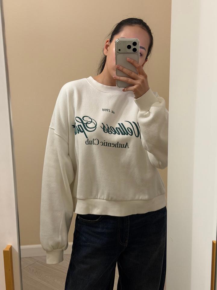 Свитшот в белом цвете Размер M Оверсайз фасон чутка укороченная Внутри мягкий флис В носке 1 раз Артикул: 478259