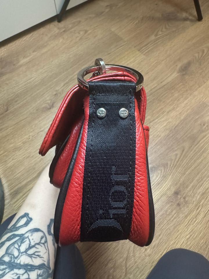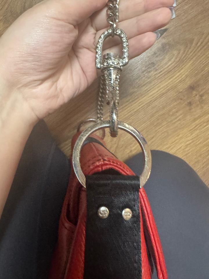 Из нюансов: нет широкого ремня и отсутствует один страз на карабине Размер небольшой, но очень удобный и вместительный для основных женских вещей. Сумка приобретена как винтажный экземпляр. В оригинальности нет полной уверенности, поэтому продаётся по доступной цене, без претензии на подлинность бренда. Артикул: 478320