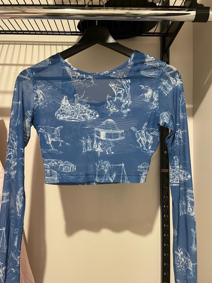 Полупрозрачный короткий топ с красивым дизайном. Состояние идеальное. Размер С. Артикул: 478325