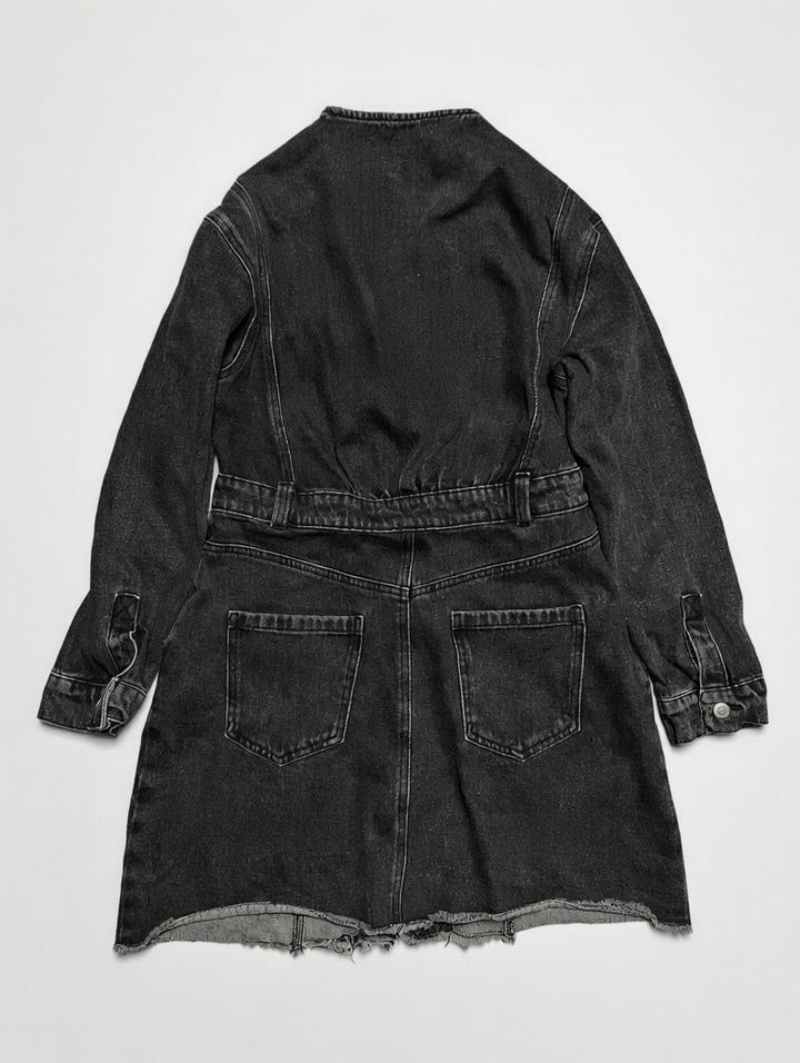 Тёмный washed denim, супер oversize силуэт, длинный (до колена или ниже), молния спереди + пояс с пряжкой — талию можно подчеркнуть или оставить свободным для street-вайба. Фитит на М и Л Артикул: 478402