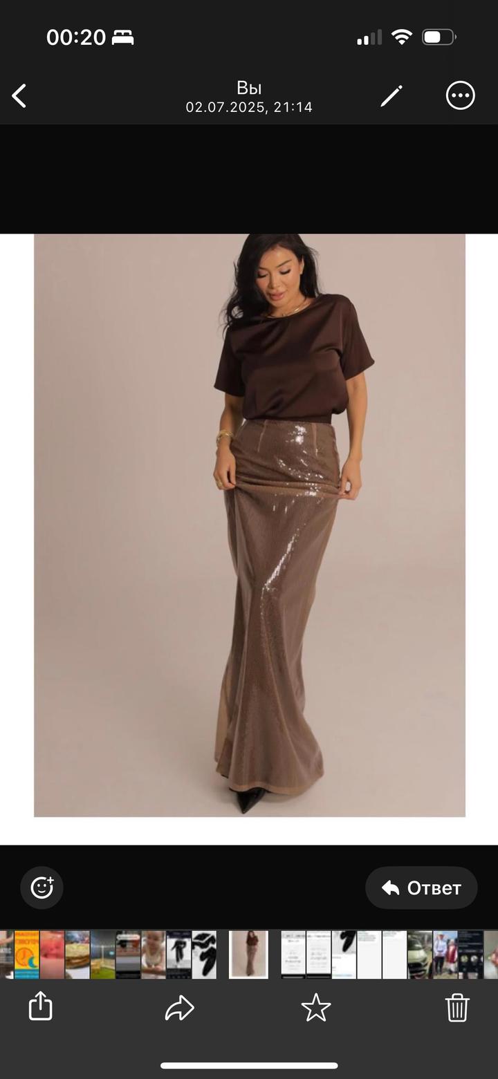 ✨ Юбка-рыбка из пайеток Очень эффектная модель, красиво подчеркивает фигуру! Надевала всего 1 раз на мероприятие — состояние идеальное. Покупала за 89 000 тг, продаю за 35 000 тг Размер:S Артикул: 478475