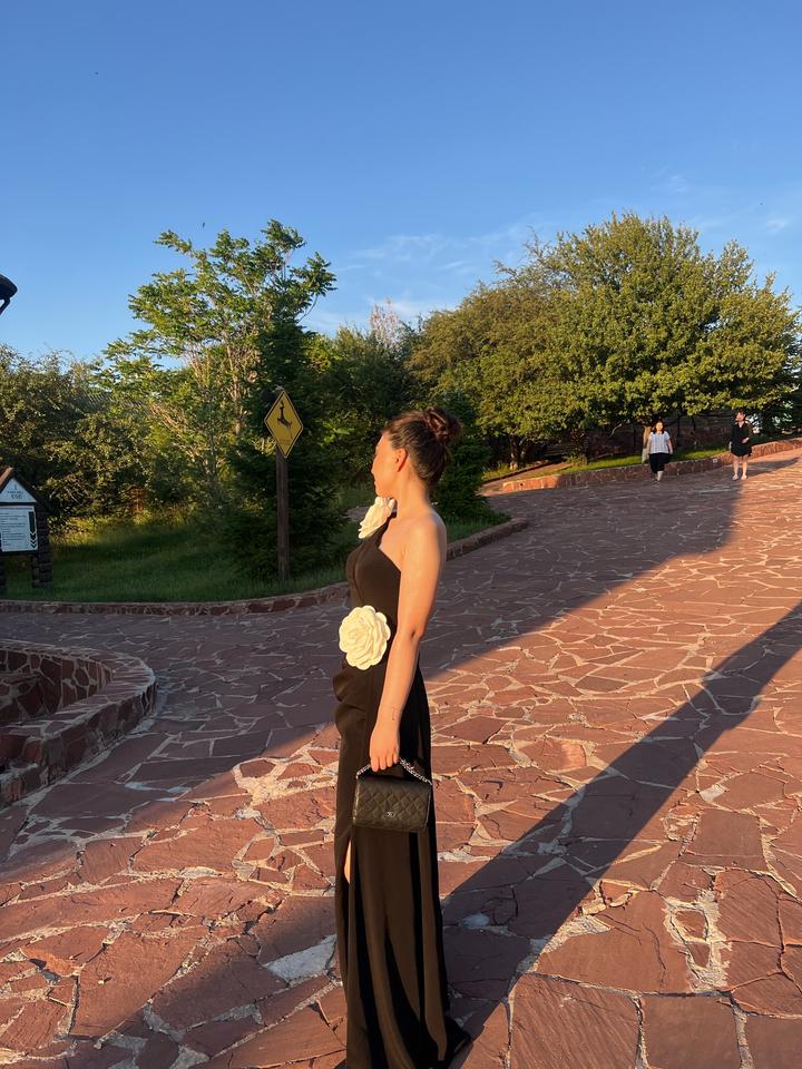 Роскошное вечернее платье в чёрном цвете. Надевалось только один раз на выпускной — состояние идеальное. Есть разрез на левой ноге, а декоративные цветы можно снять и сделать образ более минималистичным. Очень эффектно смотрится на фото и в жизни. Покупала за 135.000тг Артикул: 478630