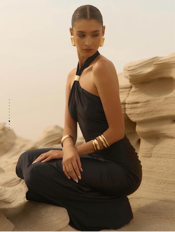 Платье макси с воротником халтер и металлическим декором. Один раз только одевала. Размер xs 42. Продам за 30000 тг. Артикул: 478793