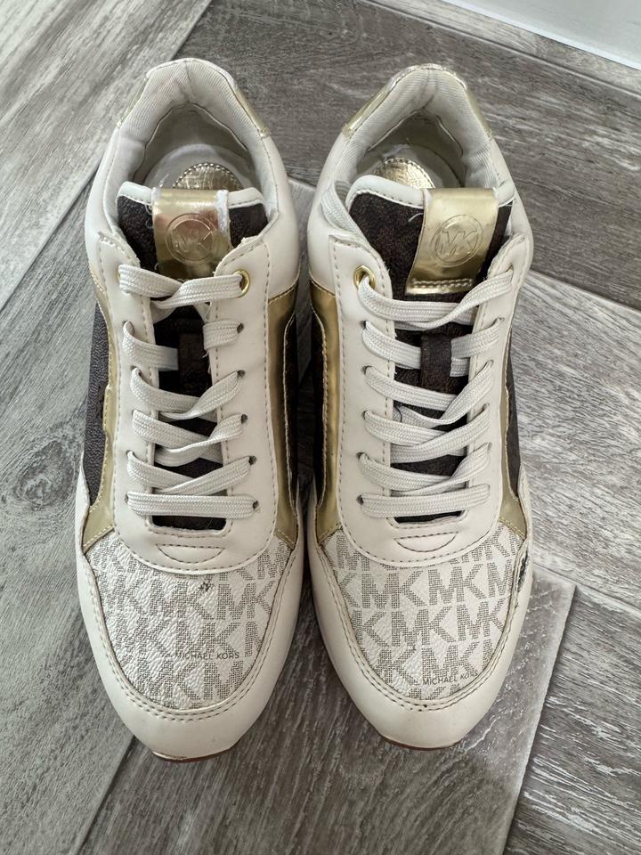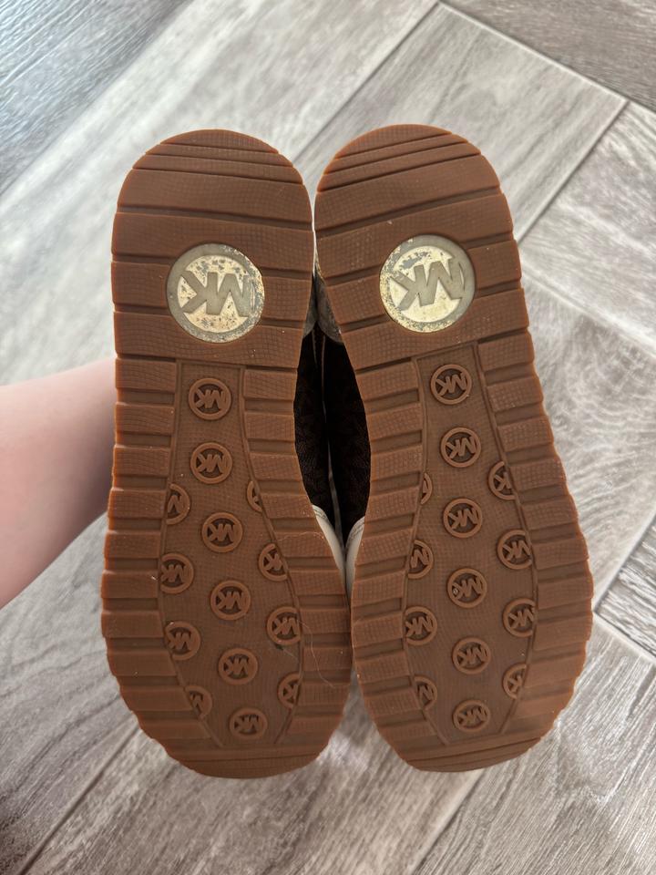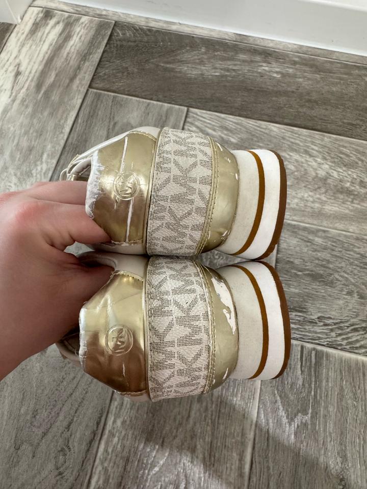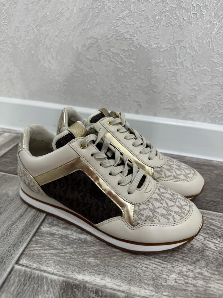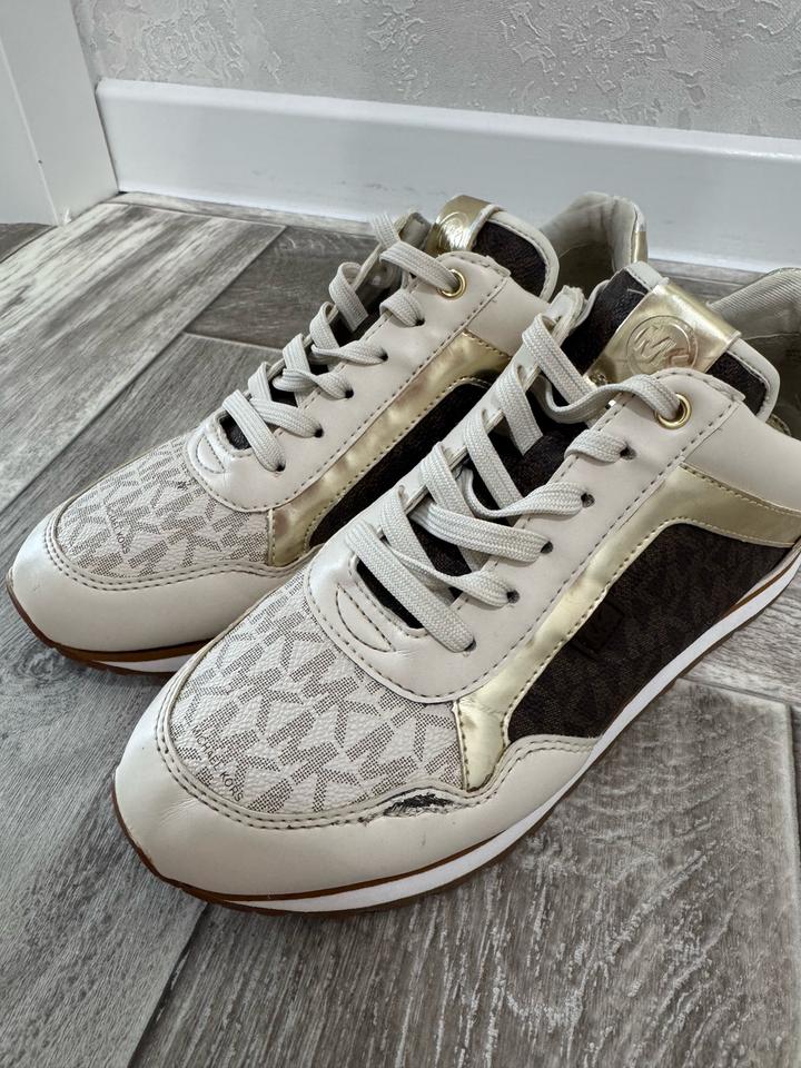 Кроссовки с дефектами — все видно на фото. Есть потертости в местах с золотым покрытием, а также спереди на одном кроссовке была дырочка — после ремонта обувником шов получился неаккуратным. После химчистки. Артикул: 478801