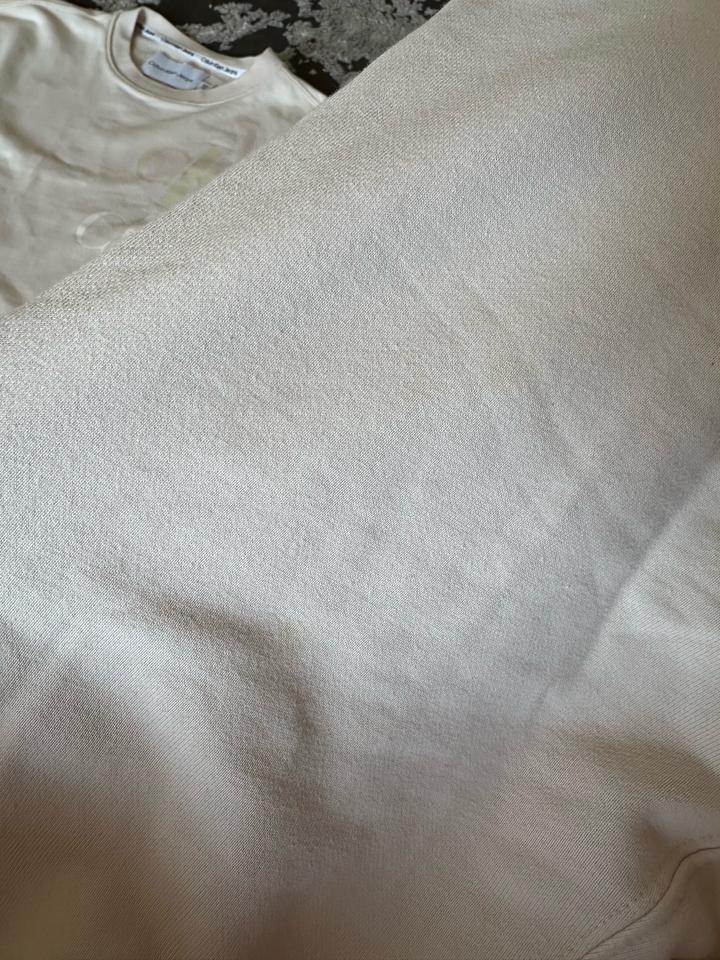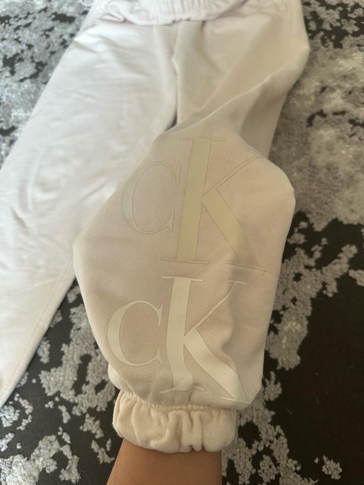 Продам двойку Calvin Klein в молочном цвете. Оригинал! В хорошем состоянии, на брюках в одном месте есть небольшие пятна, которое особо не видно (на последнем фото показала)! Размер 44-46 Артикул: 479075