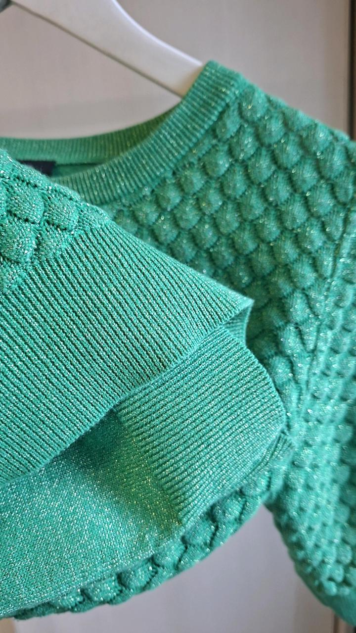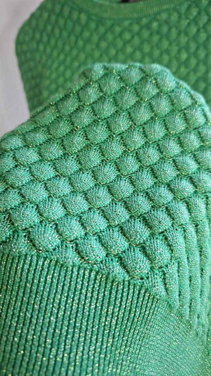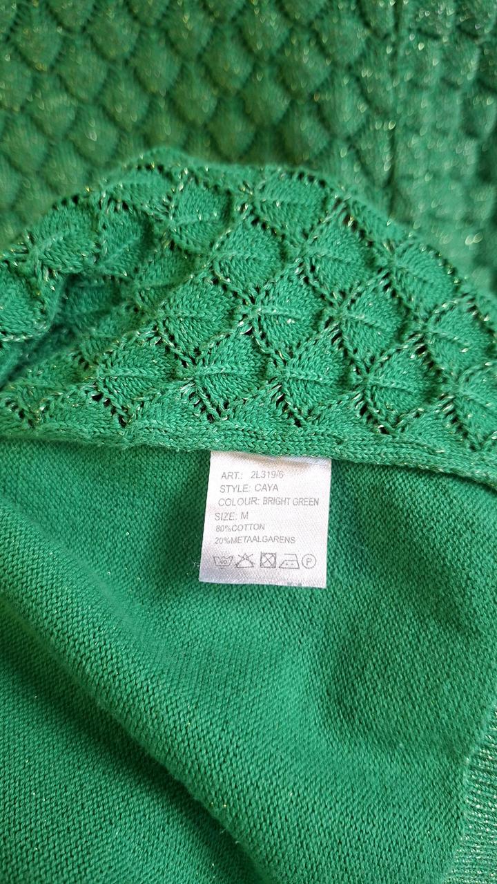 Продам шикарную кофту от бренда Brinkers! Кофта прям в изумрудном-изумрудном цвете, на фотографиях вообще другой оттенок получается! Кофта в ажурной вязке по передней части, выполнена из нитей 80% хлопка и 20% метализированой пряжи (которая как раз и даёт лёгкий блеск этому изделию)! Просто фантастическое качество, и цвет у этой красоты! Это круглогодичная модель, и абсолютно универсальная, хоть под джинсы, хоть под разнообразные юбки! Размер 46/48 Артикул: 479200