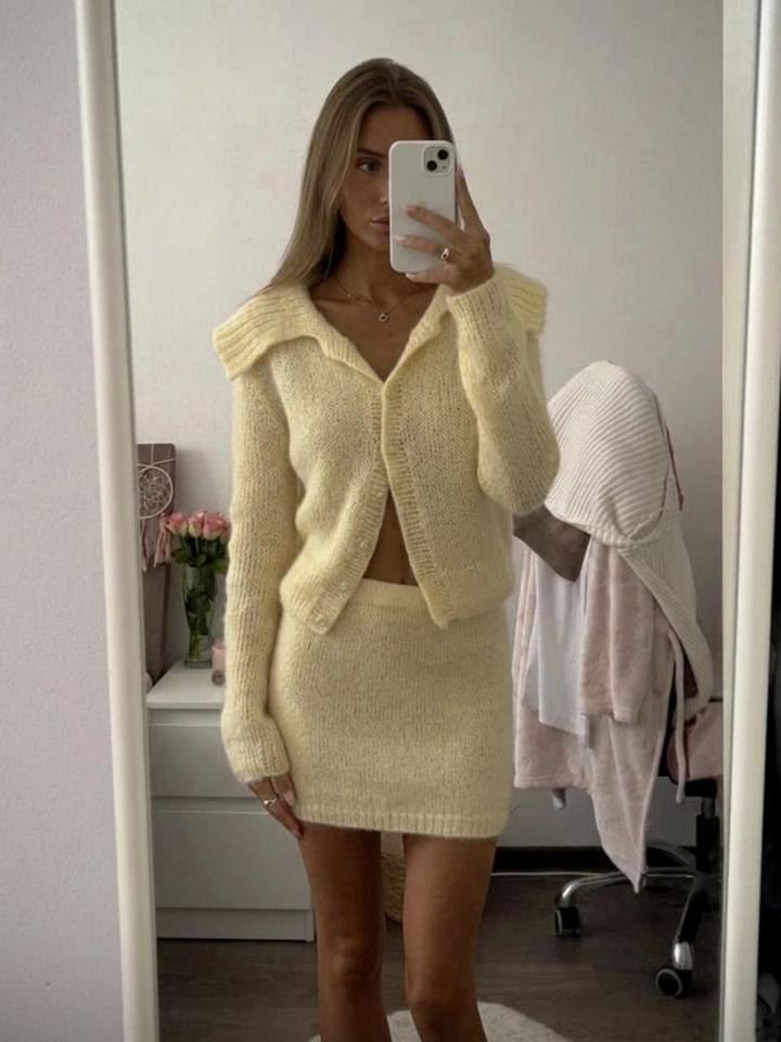 Костюм двойка вязаный в сливочном оттенке✨ Идеален для этой весны Абсолютно новый✅ Размер S Подарок к заказу от 2-х вещей🎁 10% скидка при покупке от 5 вещей Артикул: 479209