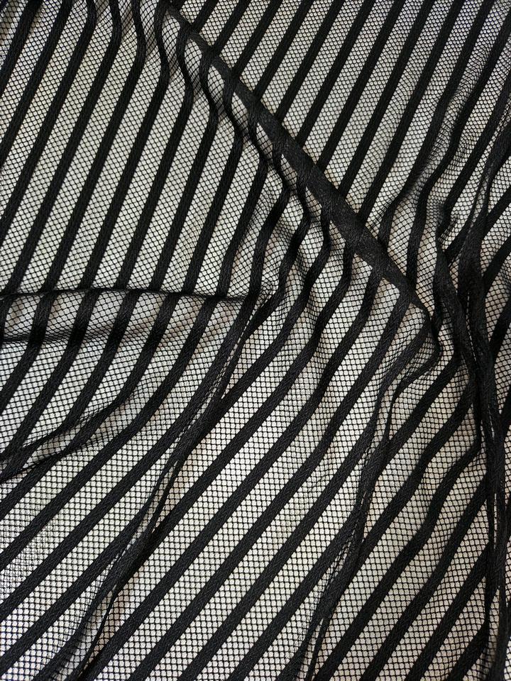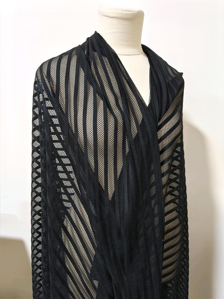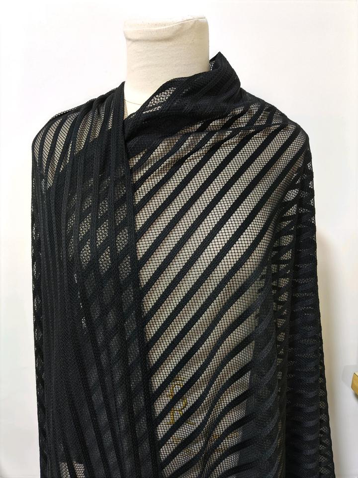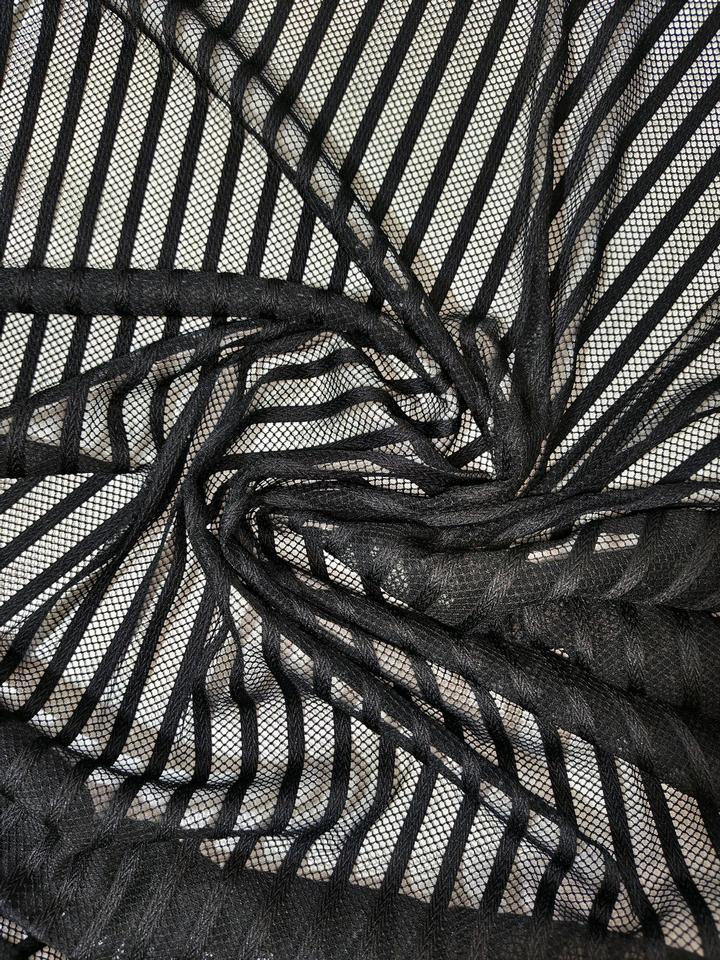 Кружевная сетка с геометрическим узором Эффектная чёрная ткань с выразительным геометрическим рисунком. Полупрозрачная сетка с чередованием вертикальных и диагональных линий создаёт стильный, современный образ. Лёгкая, пластичная, красиво драпируется. Идеально подойдёт для: • накидок и кардиганов • платьев с подкладом • вечерних образов • сценических и фотосессий • вставок в изделия Цвет: чёрный Структура: сетка Ширина 1,60 Артикул: 479241