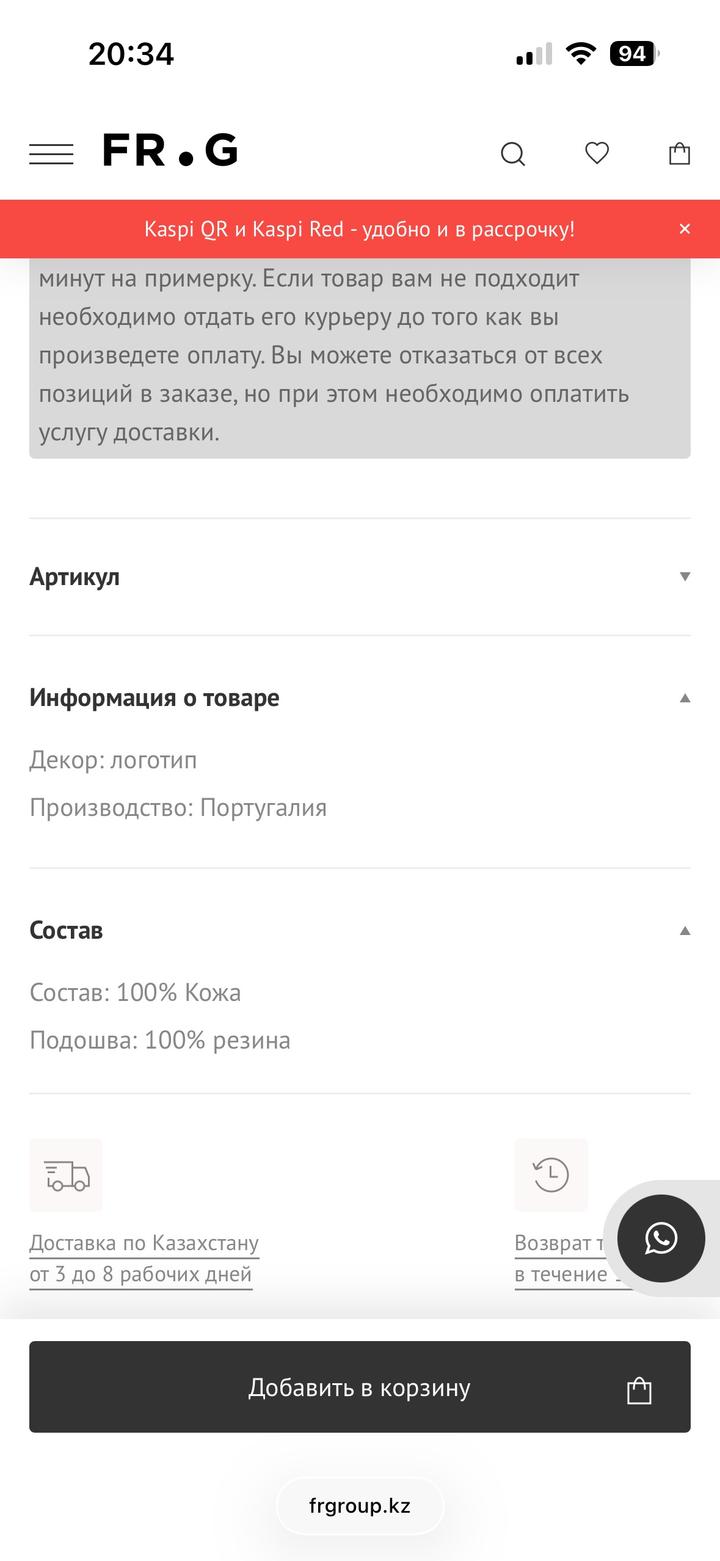 Товар находится в г. Астана