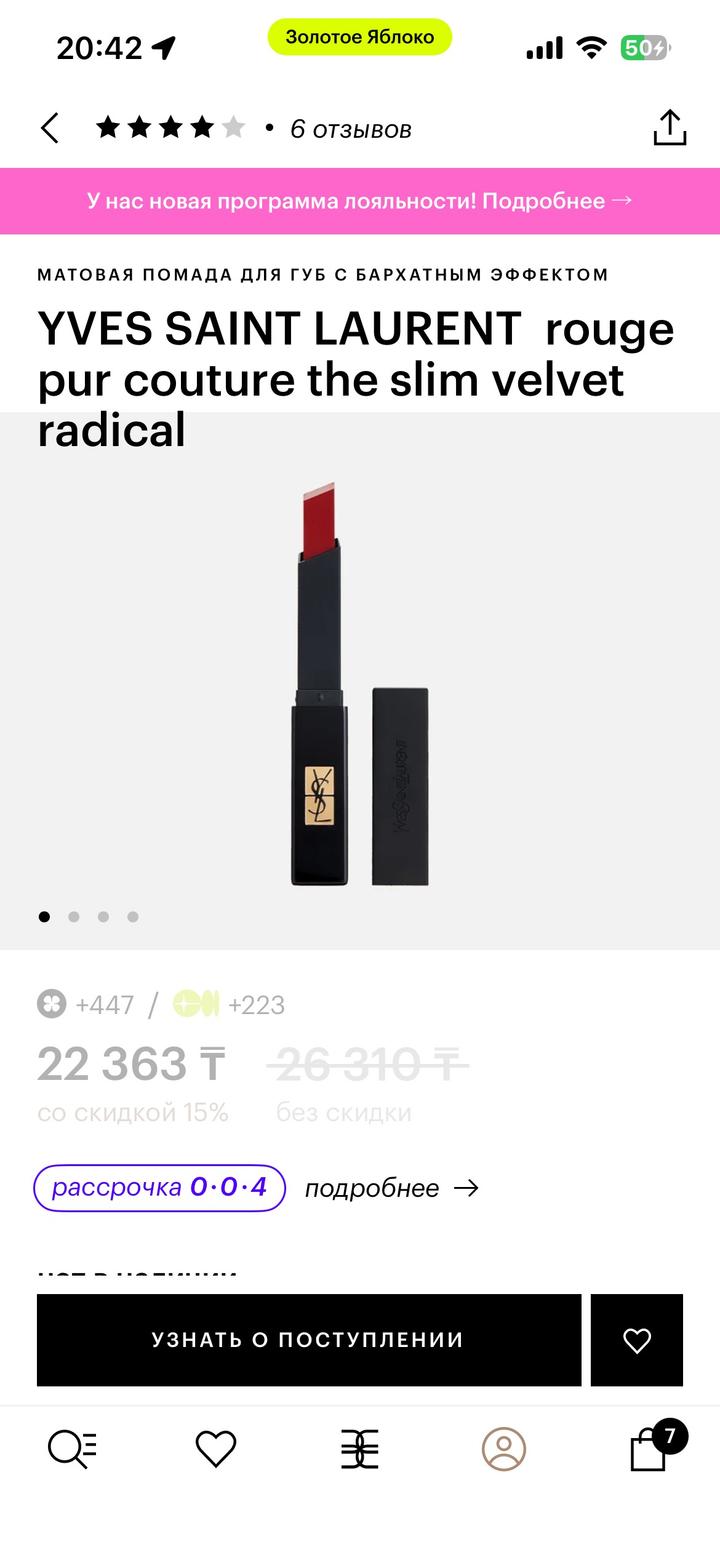 покупала в золотом яблоке, матовая губная помада оттенок 1966, yves saint laurent классический красный оттенок на выход и для важных случаев Артикул: 479323