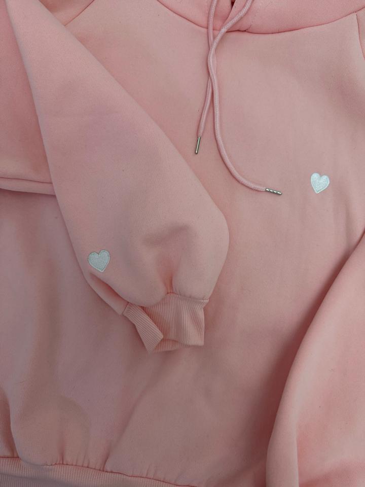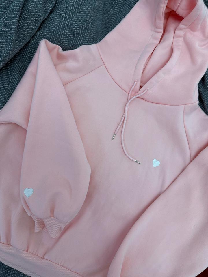 В хорошем состоянии, не оверсайз, размер S/M, материал приятный, сердечко вышито на правом рукаве и с лицевой части слева Артикул: 479423