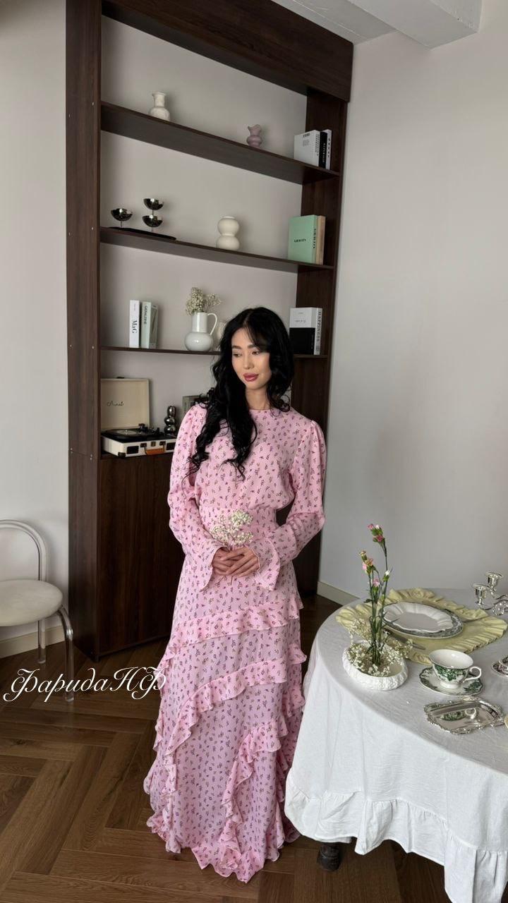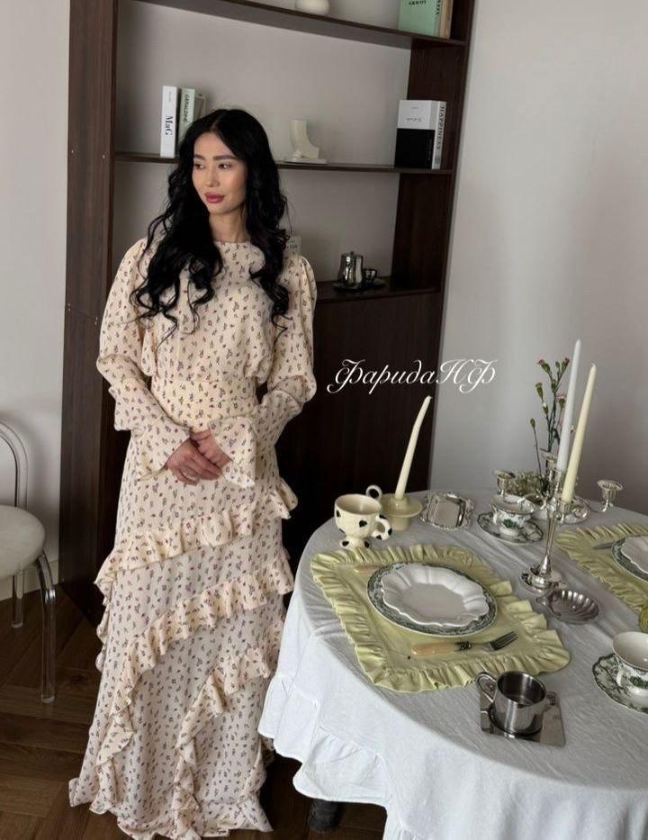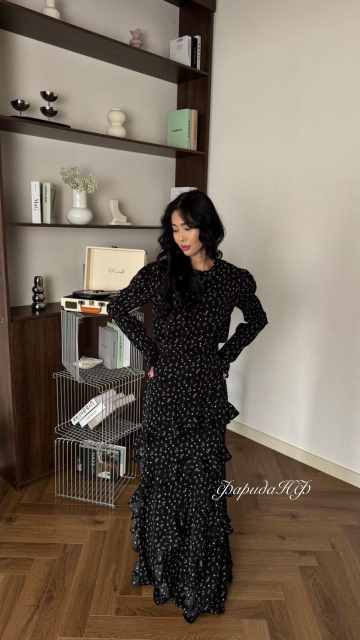 Цветочный принт- отличный вариант на весну🌷 Длинные рукава, юбка с рюшами создают воздушный и нежный образ❤️ Размеры: S, M Артикул: 479575