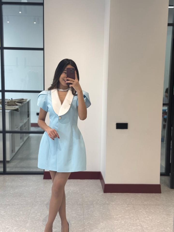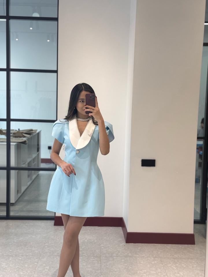 Голубое платье с белым воротникомS/M