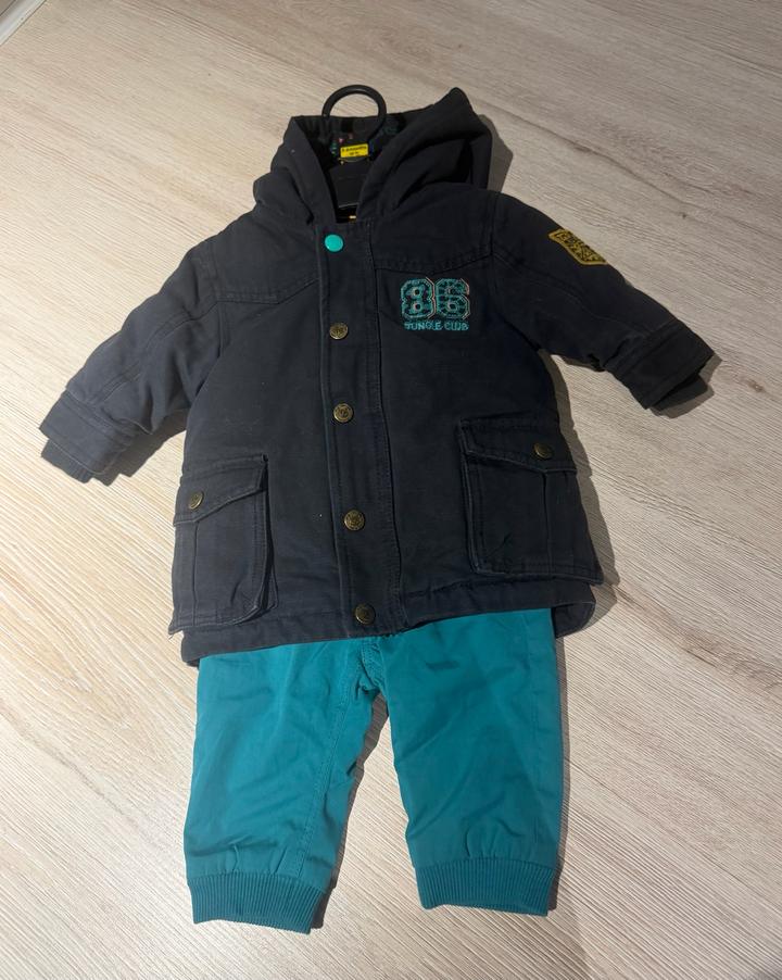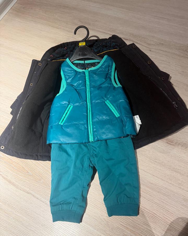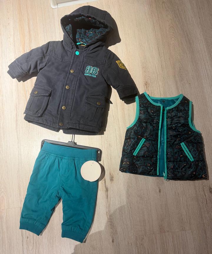 Тройка Du pareil au meme . Брюки с биркой , но указываю состояние б/у поскольку давно лежит. Парка с трикотажным подкладом , двусторонний болоневый жилет и брюки на манжете. Размер 3мес . Куртка пойдёт до 6мес. Артикул: 479681