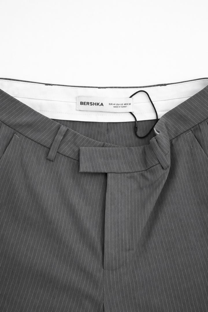 Стильные классические брюки Bershka. Темно-серые в тонкую полоску — универсальная модель, подходит и под офис, и под повседневные образы. Надевала всего 2–3 раза, состояние практически новое. Продаю, потому что стали малы. • Размер: EUR 40 (M) • Посадка: средняя • Прямой крой • Очень красиво смотрятся с рубашками, пиджаком или базовыми топами Состояние отличное, без дефектов. Артикул: 479682