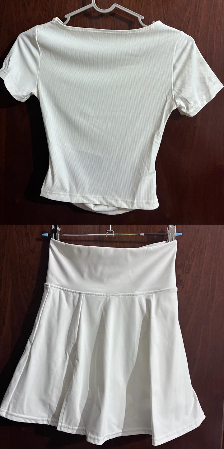 Верх и низ покупались в магазине Glyptiss, юбка этого бренда, топ нет, подбирали как набор Топ размера S на М тоже подойдет, с разрезом на спине Юбка М, со встроенными шортами, длина 41см Носила 1 раз, почти новое, без дефектов Артикул: 479712