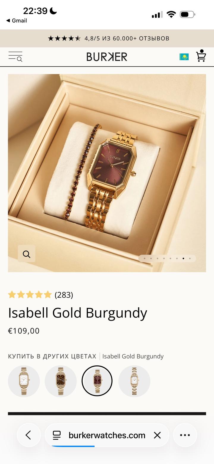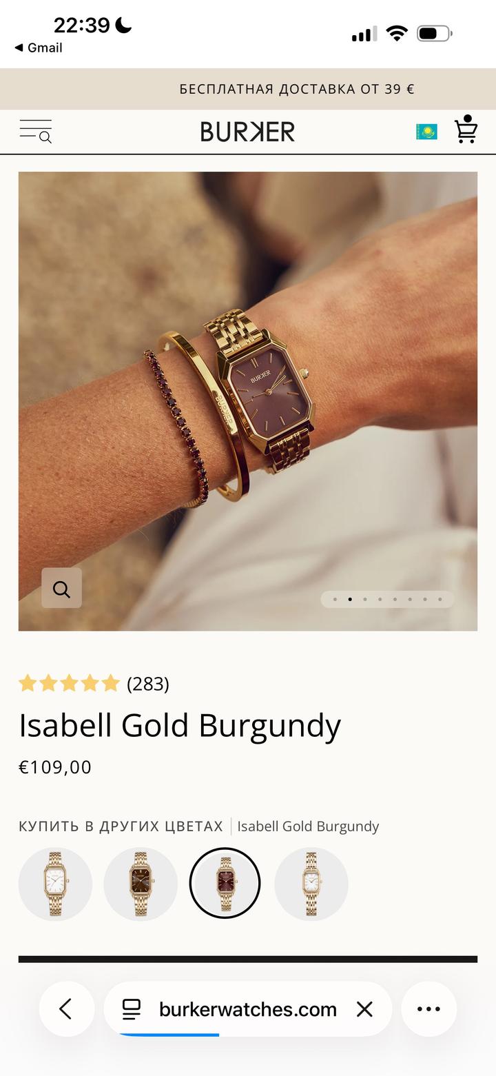Надевая нашу коллекцию Isabell Petite вы будете выглядеть по-настоящему изысканно, а часы удобно лягут на ваше запястье. ХАРАКТЕРИСТИКИ Корпус: прямоугольный Цвет корпуса: золотой Размер корпуса: 19 х 29 мм Толщина корпуса: 7 мм Внутренний цвет (циферблат): бургунди Механизм: кварцевый Цвет ремешка: золотой Водонепроницаемость: 3 АТМ Артикул: 479756