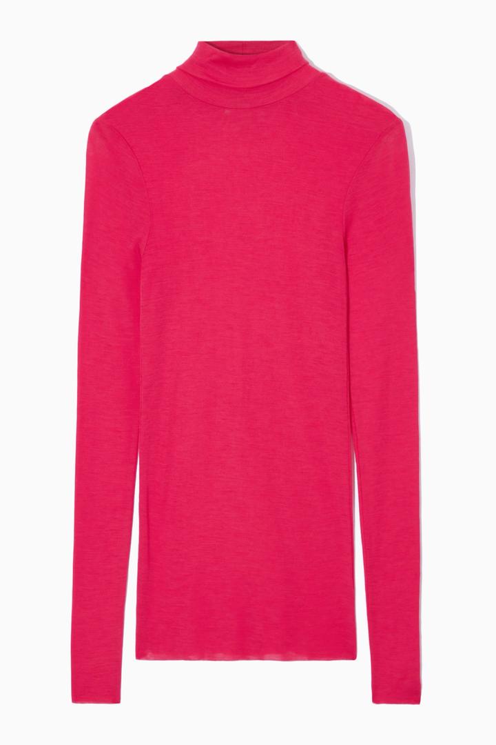 Водолазка цвета фуксии, тонкая шерсть, немного просвечивает, ношен 1 раз. Размер М, бренд COS Артикул: 479805