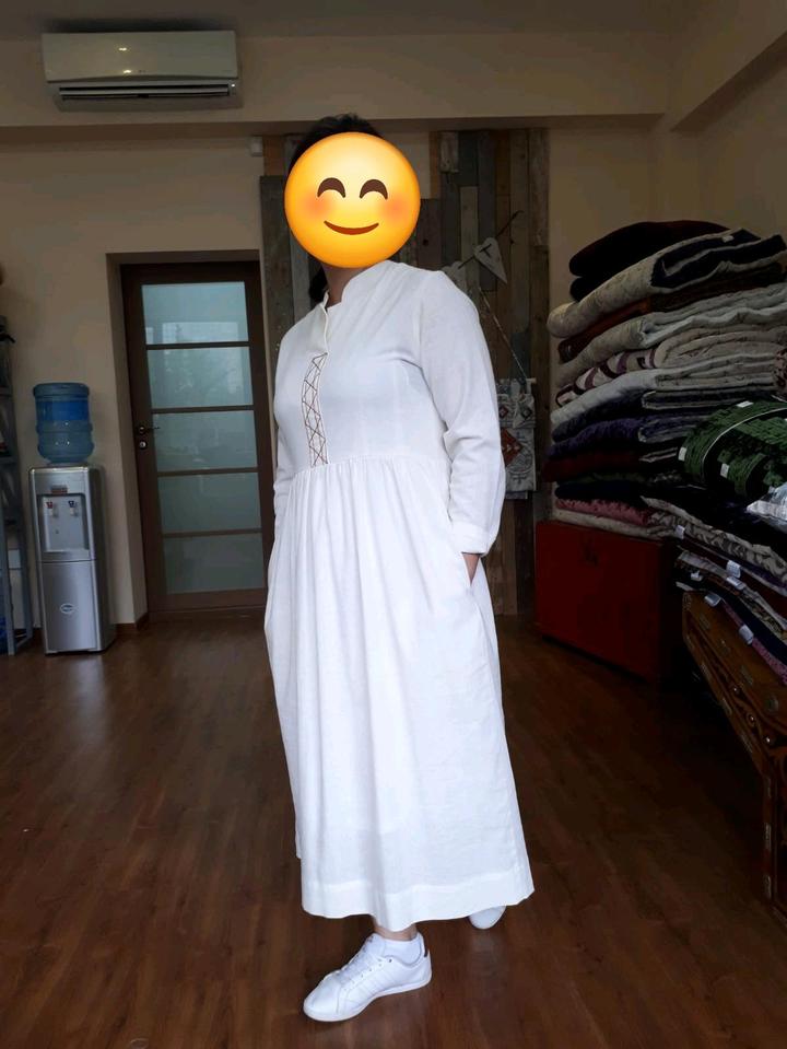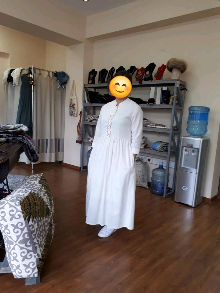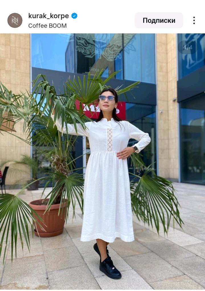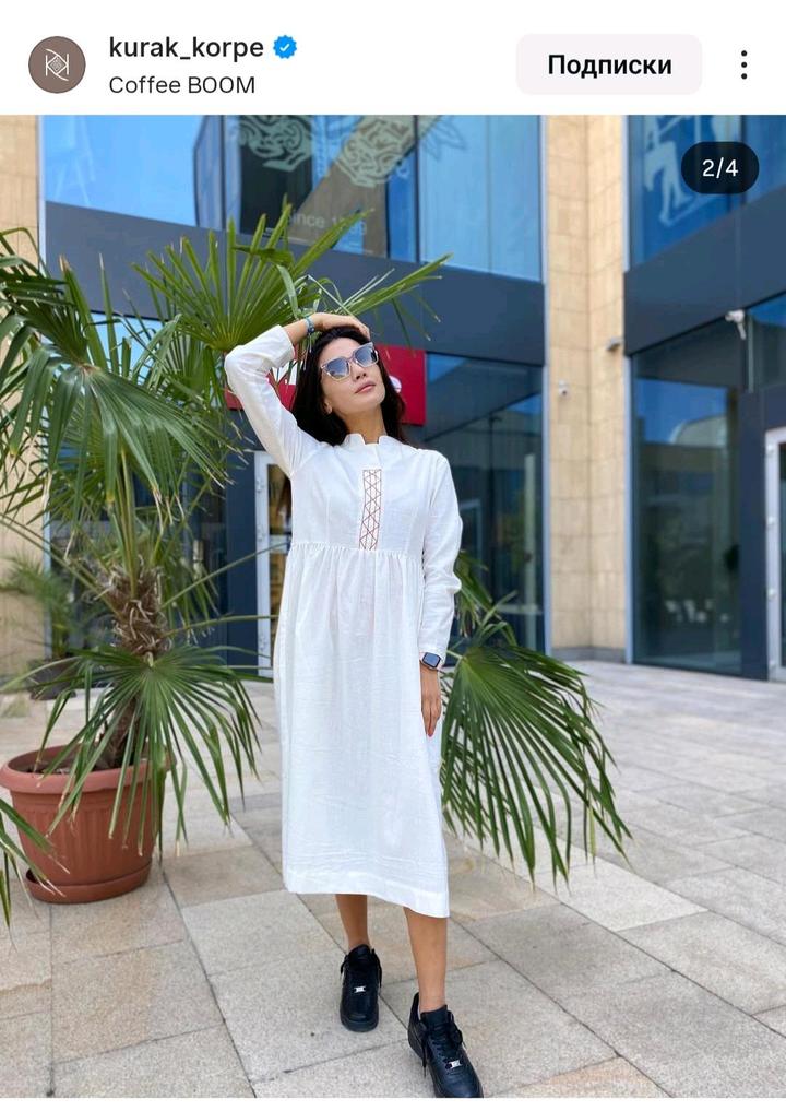 Платье из 100% льна от бренда Kurak korpe. Цвет айвори. Размер написано XL но думаю хорошо подойдёт на размер S/M, так как на мой размер L маловат. Видимо дала усадку после стирки. Состояние отличное, носила 2-3 раза. Артикул: 479845