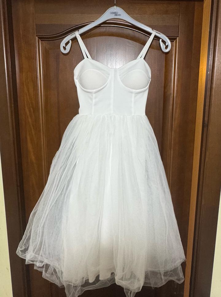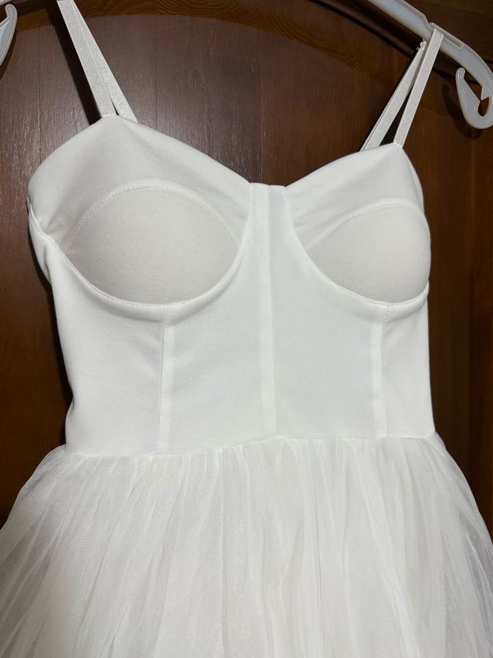 Белое платье с пышной юбкой и чашкамиM