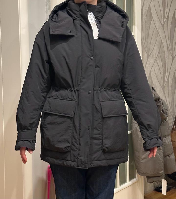 Куртка черная на кулиске, отличного качества. Покупала в магазине в США. Hybrid Down Coat - гидро пуховое покрытие. Легкая, удобный глубокий капюшон. Цена без суета доставки Артикул: 480013