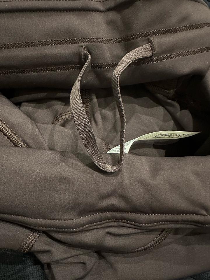 Лосины для спорта, по бокам два кармана. Плотный пояс который можно использовать как карман со стороны спины. Внутри пояса встроенна резинка для его регулирования. Приятный к телу материал. Цвет темно коричневый, размер us 14 (50). Куплен в США в оригинальном интернет магазине. Артикул: 480036